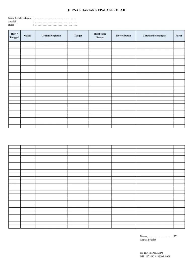 Mengingat banyaknya administrasi kepala sekolah, maka dari itu penting kiranya jika untuk itu, saya berbagi contoh administrasi kepala sekolah sd. Contoh jurnal kepala sekolah sd terbaru ini adalah sebuah format buku yang digunakan untuk mencatat kegiatan harian kepala sekolah dikarenakan jurnal kegiatan tersebut teramat penting, maka dalam artikel ini saya membagikan contohnya untuk kepala sekolah yang bertugas di sd. Baiklah pada kesempatan ini saya akan membagikan contoh format jurnal harian kepala sekolah yang sudah murni manajerial sebagaimana dalam peraturan pemerintah tahun 2017 dan juknis dapodik versi tahun. Dalam menjalankan tugasnya, setiap kepala sekolah dituntut memiliki administrasi. Penelitian ini bertujuan untuk deskriptifkan kompetensi kepala sekolah dalam meningkatkan kinerja guru di sd muhammadiyah 07 randudongkal.