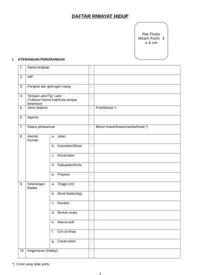 Daftar riwayat hidup (drh) adalah form berisi riwayat hidup berdasarkan surat edaran kepala badan administrasi kepegawaian. Calon pegawai negeri sipil tahun 2010 di universitas indonesia. Keputusan kepala badan kepegawaian negara nomor : Pusat penilaian kompetensi pns (assessment center. Adapun cara pengisian formulr isian atau blangko daftar riwayat hidup cpns atau cpns yang akan menjadi pns adalah sebagai berikut: